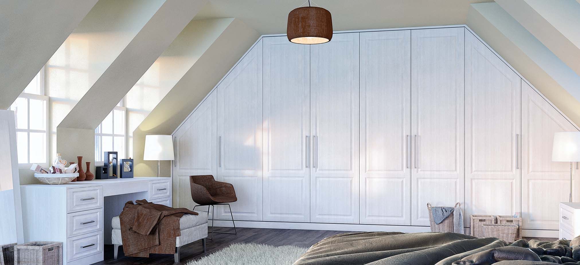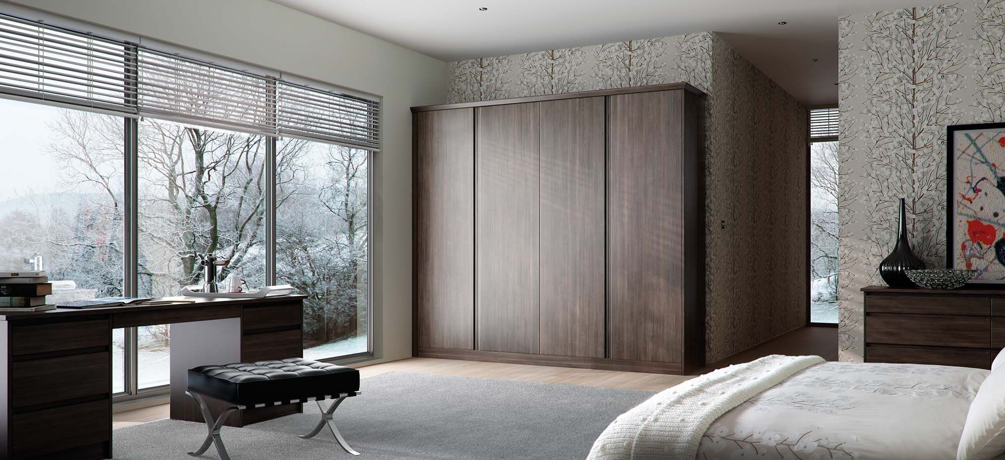 Our wardrobes can accommodate fully customised interiors to suit your storage requirements, and hinged doors ensure easy access.