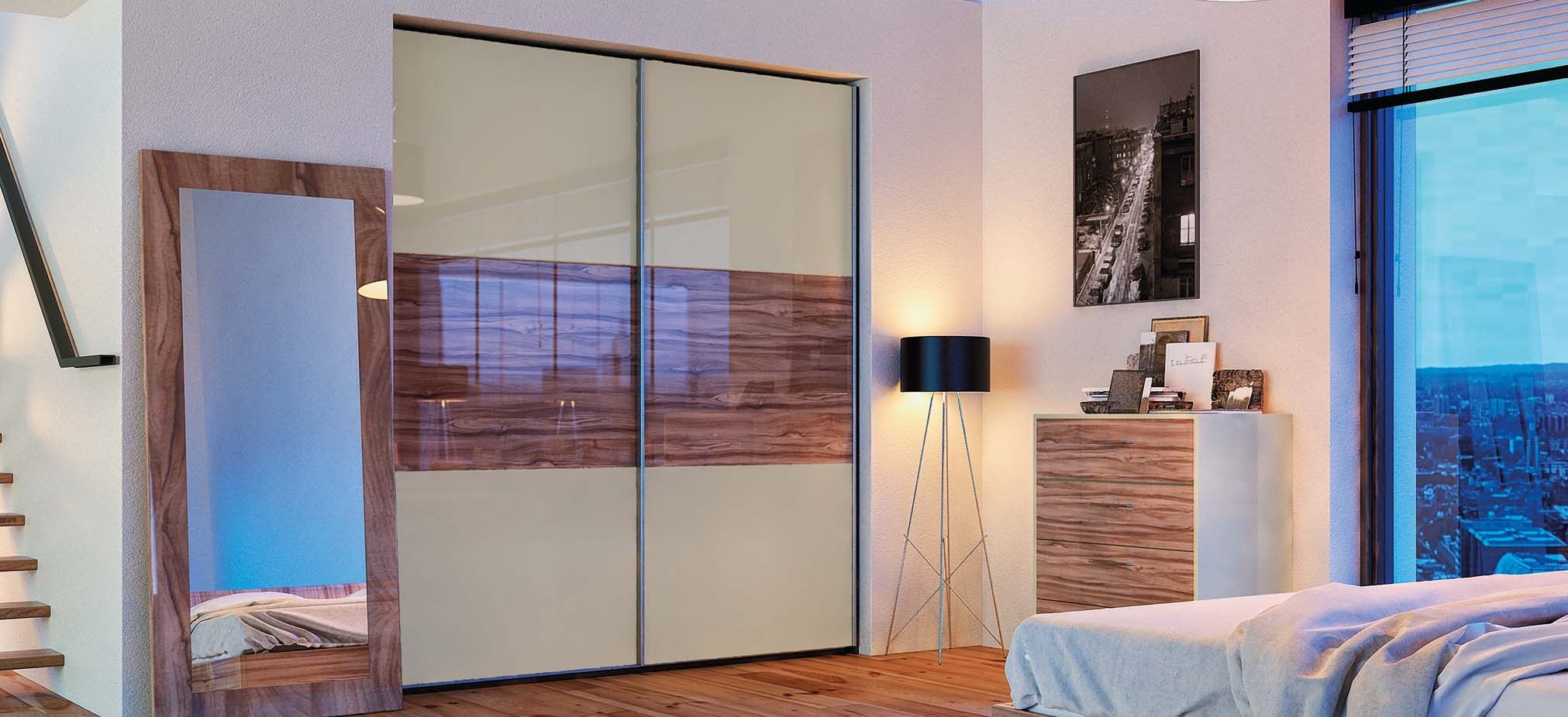 Our range of stylish sliding doors offers a wide choice of panel styles, frames, colours and finishes. Sliding doors are an obvious choice in smaller rooms, as they save space where traditional hinged doors may be difficult to open. What’s more, when used in large sized panels, or with mirrored finishes, sliding doors give the illusion of space in a smaller room.